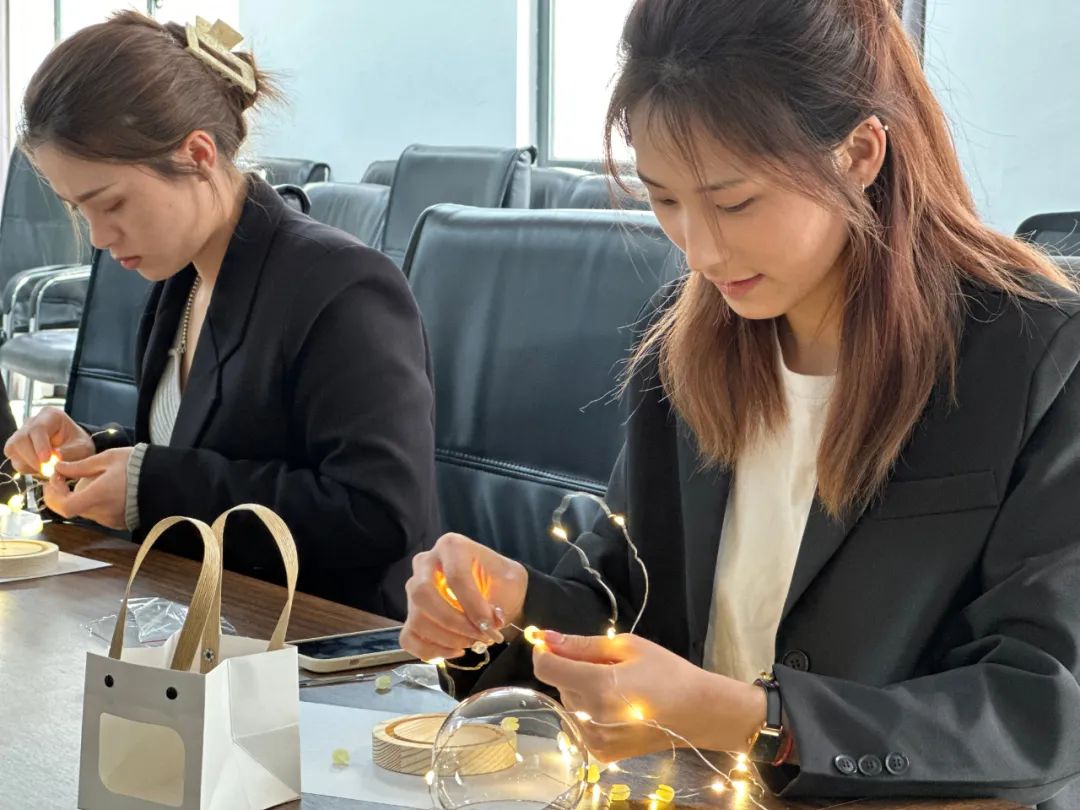 同時(shí),陜西宜路行餐飲管理有限公司開(kāi)展“美麗如你,似花綻放”手工DIY活動(dòng),讓女同胞們?cè)谧约旱墓?jié)日里,通過(guò)DIY彩燈,裝點(diǎn)女性生活,展現(xiàn)流光溢彩的職場(chǎng)生活。