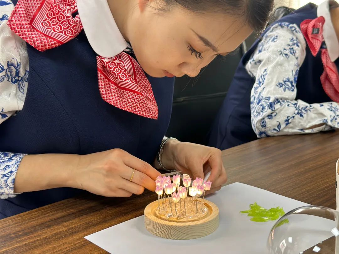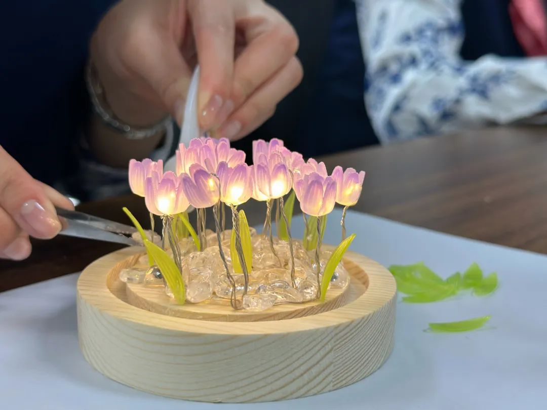 所有人都興趣盎然,神情專注,很快,一盞盞郁金香小夜燈亮了起來(lái)。看著自己動(dòng)手制作的郁金香小夜燈,每個(gè)人臉上都洋溢著快樂(lè)。