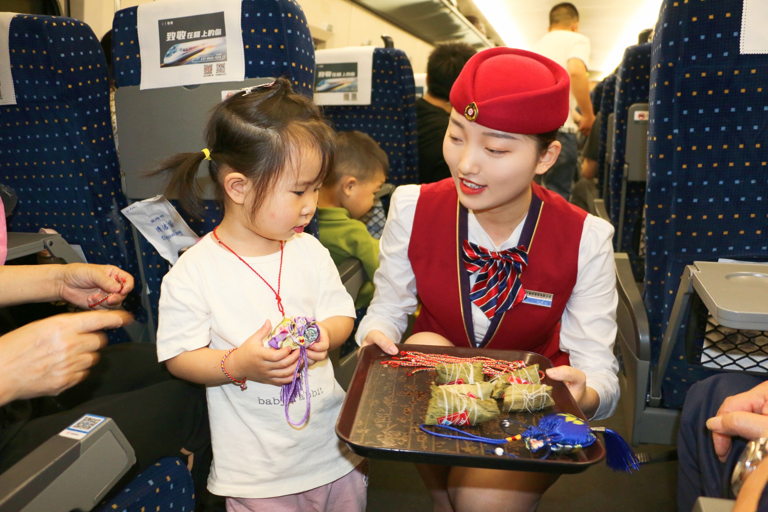 活動(dòng)臨近尾聲,餐服工作人員將包做好的香囊、紅繩、粽子,分發(fā)給乘車(chē)旅客,大家紛紛表示這趟端午旅程溫馨而富有樂(lè)趣。這趟高鐵端午旅程,不僅弘揚(yáng)了傳統(tǒng)端午文化,傳遞了美好,更溫暖了旅客的心。
