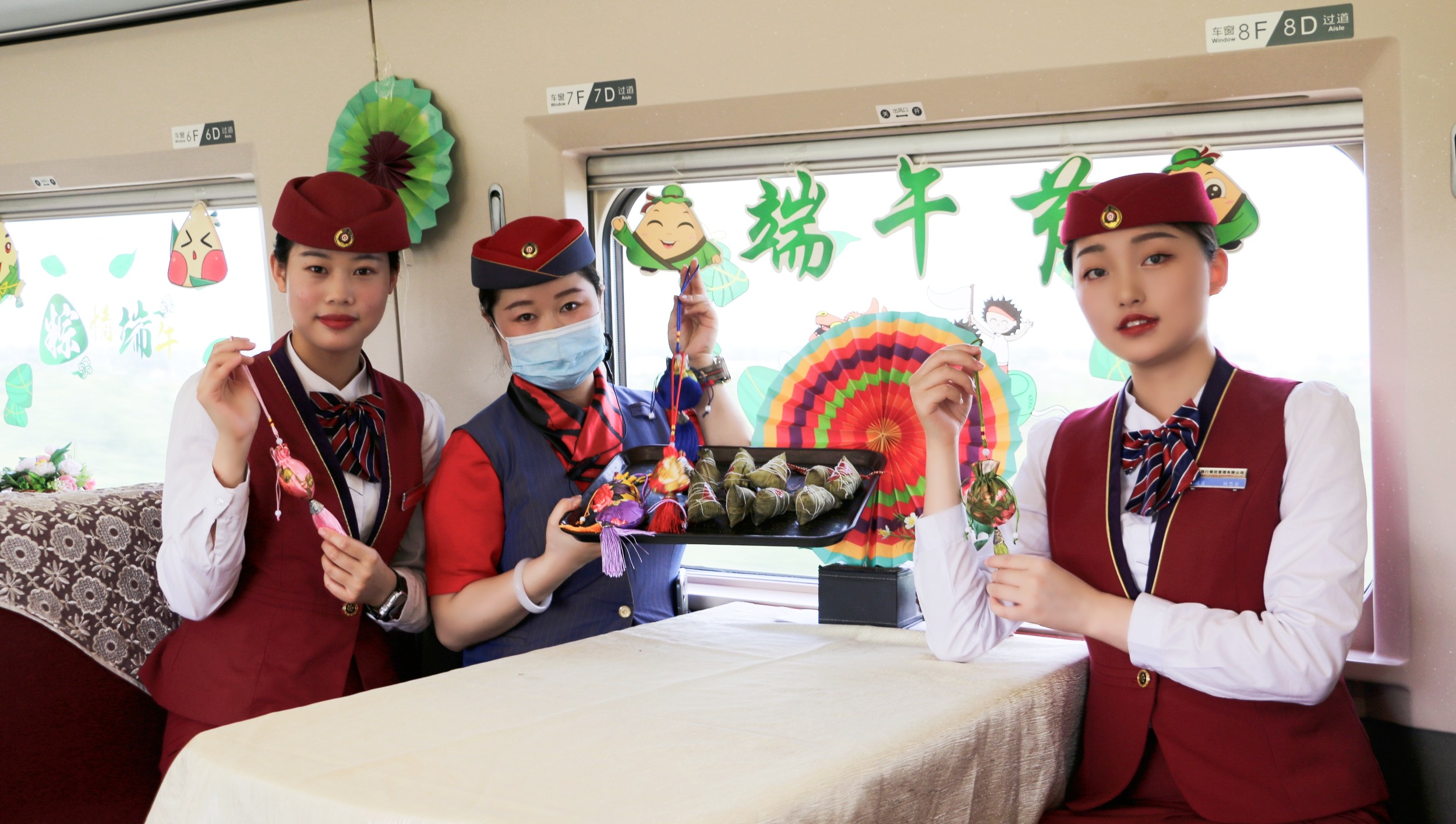 端午節(jié)來(lái)臨之際,在西安北開(kāi)往深圳的G824次列車(chē)上,端午卡通掛件將餐車(chē)裝扮一新,陜西宜路行餐飲管理有限公司為乘客精心打造的“濃情端午·弘揚(yáng)傳統(tǒng)文化”主題活動(dòng)進(jìn)行的如火如荼。