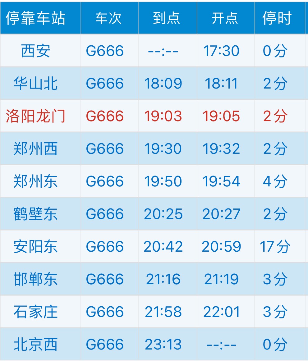 西安至北京西G666次