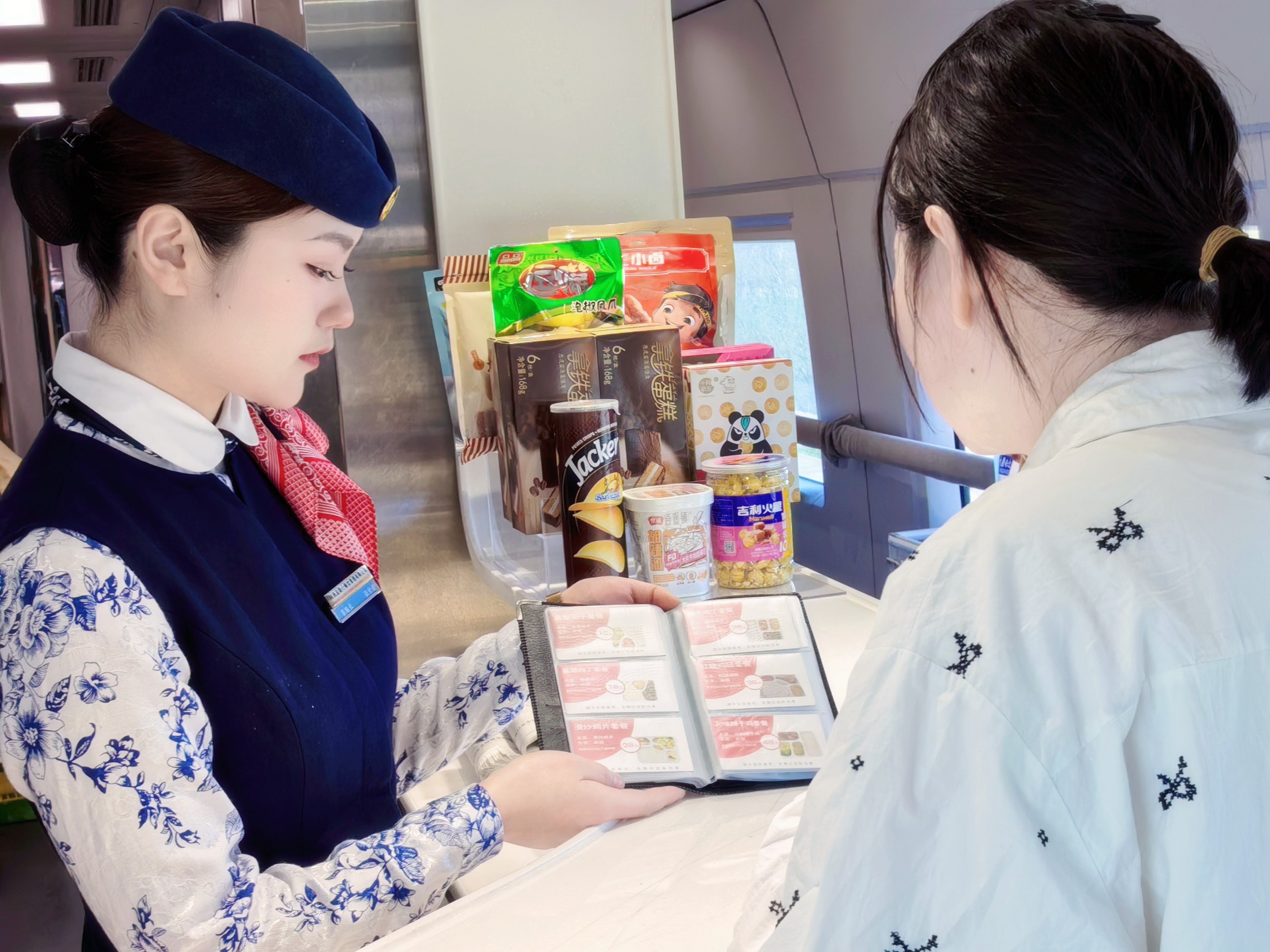 在宜路行公司擔(dān)當(dāng)?shù)母哞F列車上,她主動(dòng)為旅客介紹著餐車所經(jīng)營(yíng)品類,同時(shí),告訴旅客還可以通過(guò)座位二維碼手機(jī)訂購(gòu)各類營(yíng)養(yǎng)快餐、咖啡茶飲、休閑食品等所需服務(wù),都能夠選到獨(dú)特的美食,小酥肉、宮保雞丁、肉三鮮等營(yíng)養(yǎng)快餐,每一道菜品都融合了陜西風(fēng)味和美食文化的傳承。更有特色小吃,香醇可口的羊肉泡饃、口感醇厚的稀糊爛臘牛肉和西北人都愛(ài)喝的胡辣湯,讓旅客在高鐵上也能品嘗到地道的傳統(tǒng)美食盛宴。